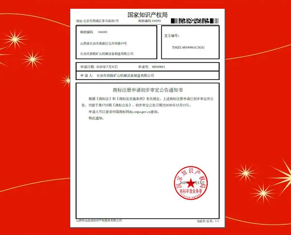 商標(biāo)注冊(cè)申請(qǐng)初步審定公告通知書(shū)